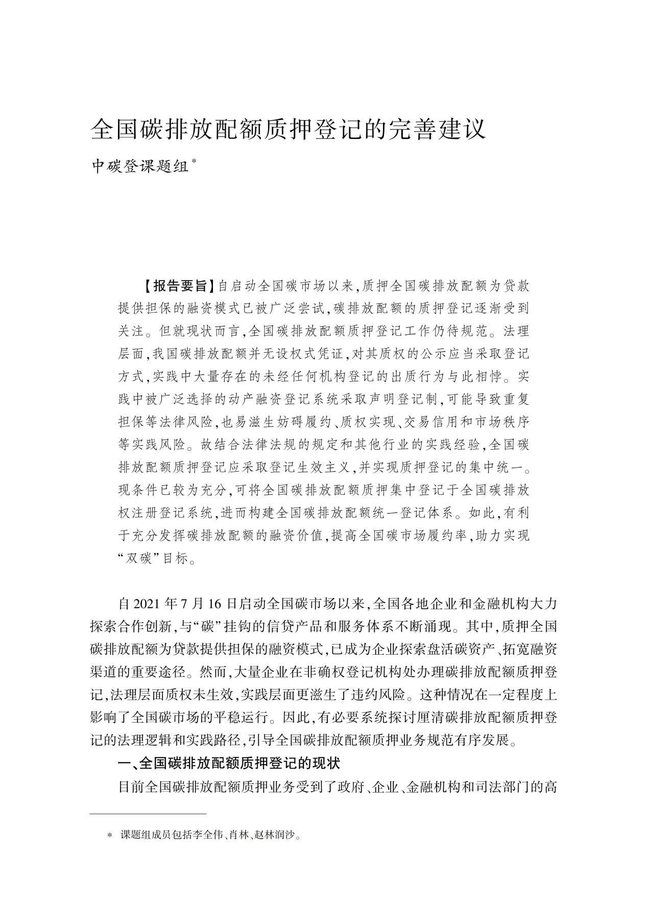 中碳登课题组:全国碳排放配额质押登记的完善建议