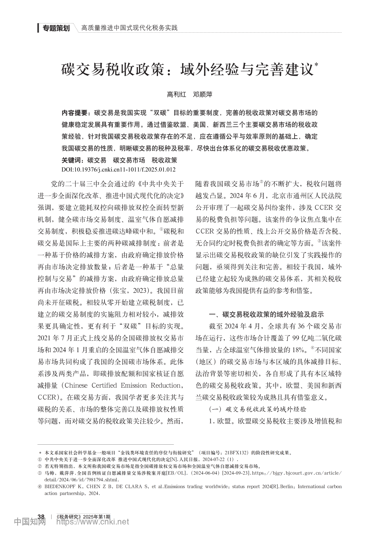 高利红,邓顺萍:碳交易税收政策 域外经验与完善建议